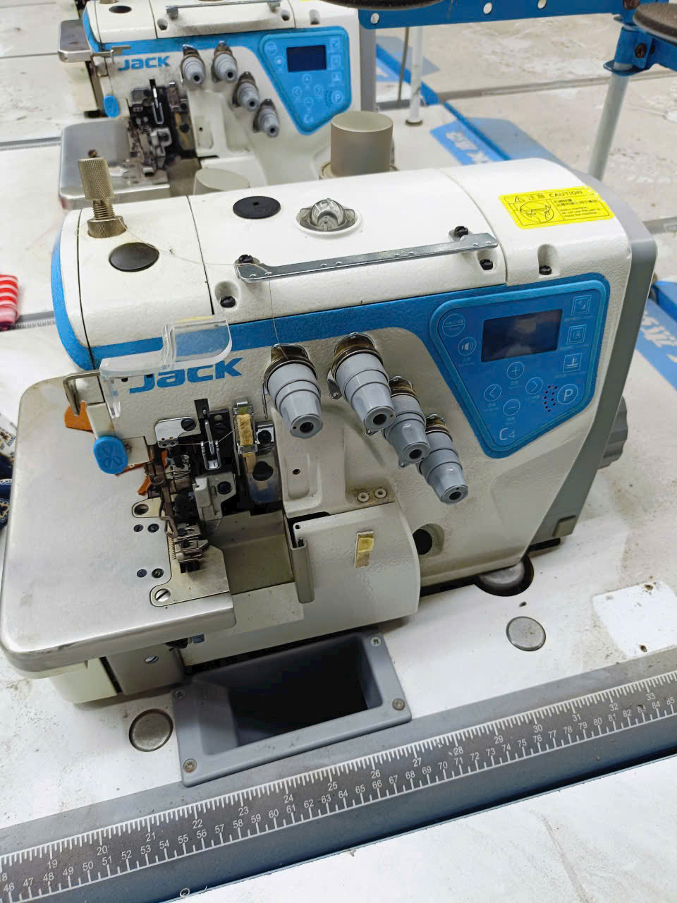 (Chèn ảnh minh họa: Máy vắt sổ điện tử cũ Jack C3, C4 đang hoạt động ổn định trong xưởng may)